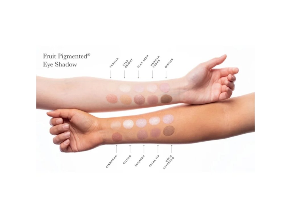 S těmito okouzlujícími očními stíny budete jiskřit a zářit! Základní ingrediencí je na bílkoviny a minerály bohatý rýžový škrob a pigmenty z ovoce a zeleniny bohaté na antioxidanty a vitamíny. V závislosti na odstínu mohou obsahovat přírodní třpytivý minerál slídu.